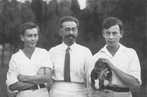 Михаил Людвигович с сыновьями Ильей (слева) и Глебом. Крым, Алупка около 1925 г. Фотография взята из книги-альбома "Илья Михайлович Франк. К 110-летию со дня рождения". ФИАН, ОИЯИ: ООО «Издательство «РМП», 2018. С. 39.