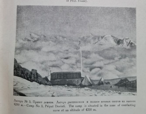 Сборник научных статей «Труды Эльбрусской экспедиции 1934 и 1935 гг.» в Российской Государственной Библиотеке им. В.И. Ленина. Обложка и фотография лагеря на станции «Приют девяти». Фотографии Е. Малой.