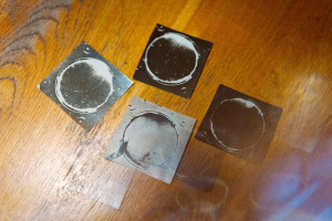 К письму прилагалось 4 снимка из камеры Вильсона – черно-белые квадратики со стороной 7-7.5 см, четко видимой окружностью камеры и треками заряженных частиц, пролетевших через нее 90 лет назад.