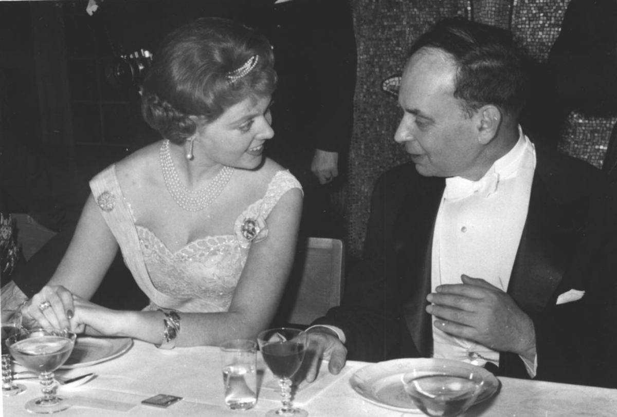 Обед в Стокгольмской ратуше после вручения Нобелевской премии. Илья Михайлович Франк беседует с принцессой Биргиттой. 10 декабря 1958 г. Фотография взята из книги-альбома "Илья Михайлович Франк. К 110-летию со дня рождения". ФИАН, ОИЯИ: ООО «Издательство «РМП», 2018. С. 136.