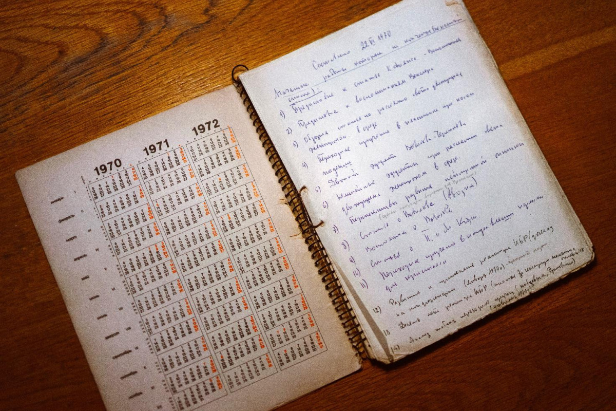 Следы этой мобильности есть и в архиве. Так, в фонде Франка есть два еженедельника, которые он вел в 1964-м и 1970-м годах. На их страницах узорным почерком Ильи Михайловича записаны места, где он должен побывать, и мероприятия, которые нужно посетить. Из них становится виден ритм перемещений ученого.